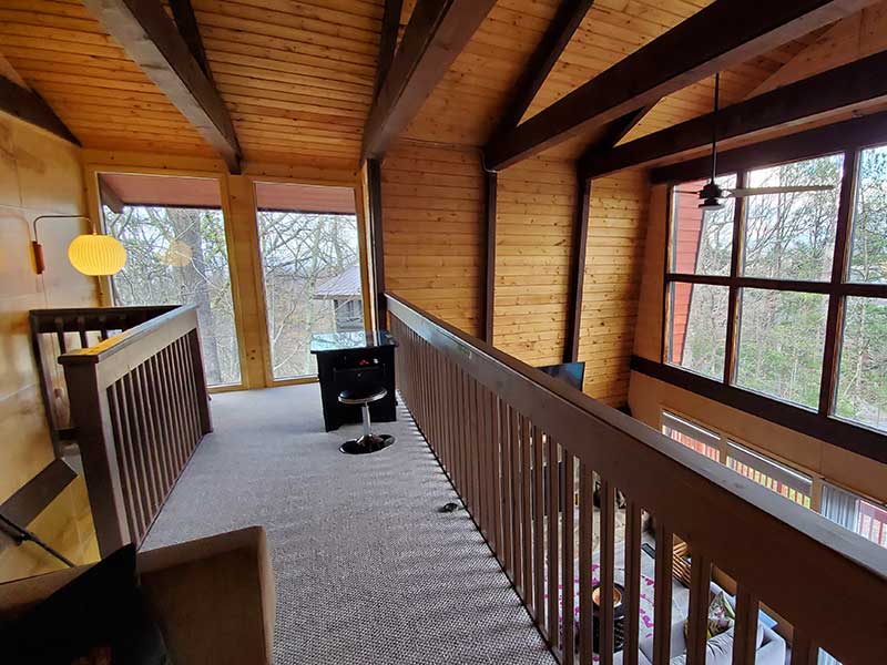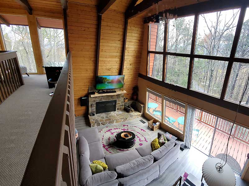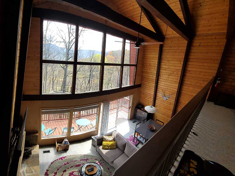 Treetops sits on top of a wooded ridge with forest and mountain views from all sides. Specifically, the front wall of windows is set up high, looking towards Mt. Leconte with expansive winter views. Expect excellent natural light at the Chalet all day long! Also, in season, you are likely to see black bears as a regular bear trail runs across the ridge.